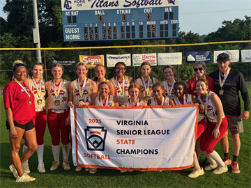 Congratulations to our very own District 15 Senior League Softball Champions, Lancaster County Little League for defeating previously undefeated Chesterfield to capture the Virginia State Senior League Softball Championship. Well done, ladies, and good luck at Region!